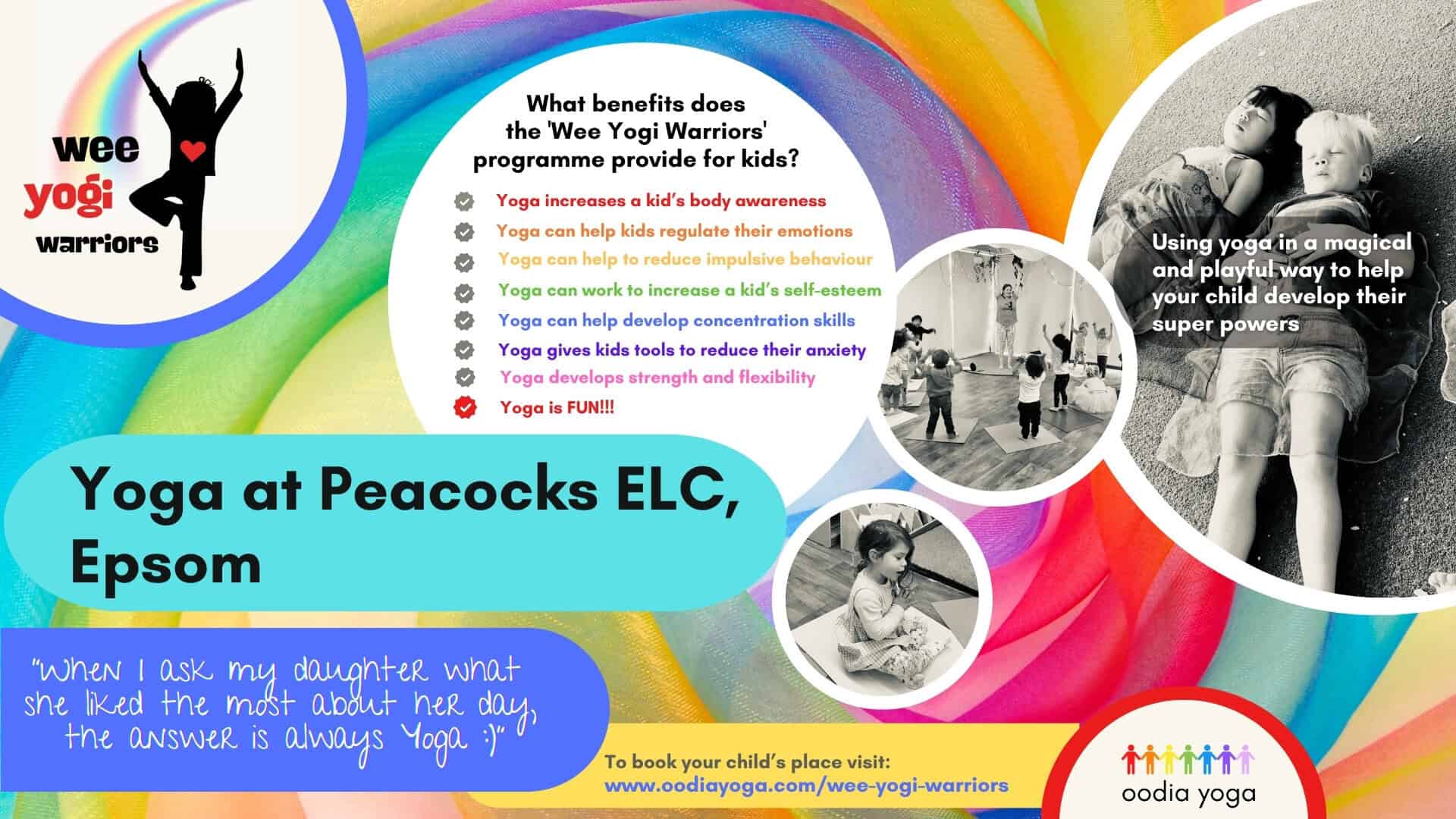 | Yoga at Peacocks, Epsom is at 10 am on Thursdays during the school term. There are no sessions on Public Holidays. The cost of the term reflects this and will vary from term to term depending on the number of sessions included. |